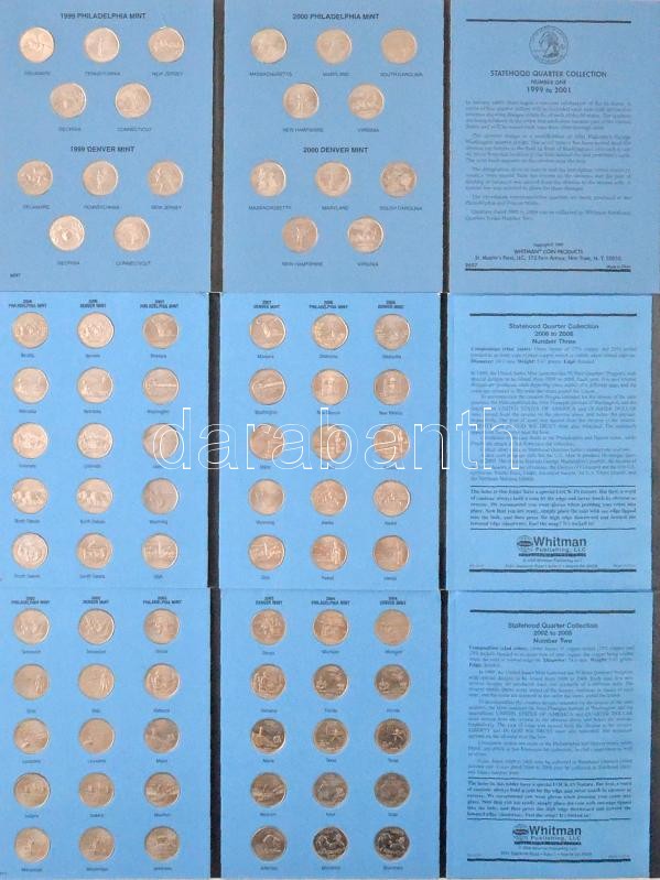 Amerikai Egyesült Államok 1999-2009. 1/4$ Cu-Ni "50 Állam" 112db klf érem három "Statehood Quarters" gyűjtői mappában, benne minden érmének a "D" és a "P" verdejeles kiadása T:1,1-