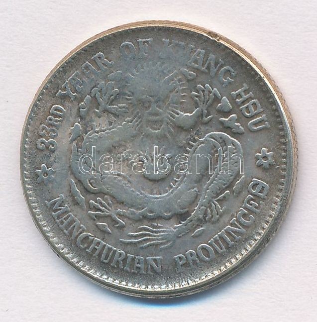 Chinese Empire / Manchurian Provinces ~1908. 20 Cents Ag C:VF frame mark on the entire edge