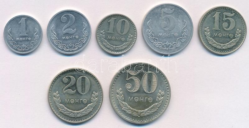 Leírás: Mongólia 1977. 1m Al + 2m Al + 5m Al + 10m Cu-Ni + 15m Cu-Ni + 20m Cu-Ni + 50m Cu-Ni T:1-2