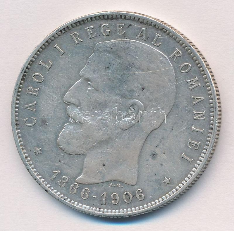 Romania 1906. 5... https://www.darabanth.com/hu/344-Gyorsarveres/344.0/Numizmatika/Kulfoldi-fem-es-ezustpenzek~1000013/Romania-1906-5L-Ag-I-Karoly-T2-2-ph--Romania-1906-5-Lei-Ag-Carol-I-CXF-VF-edge-error-~II1951863