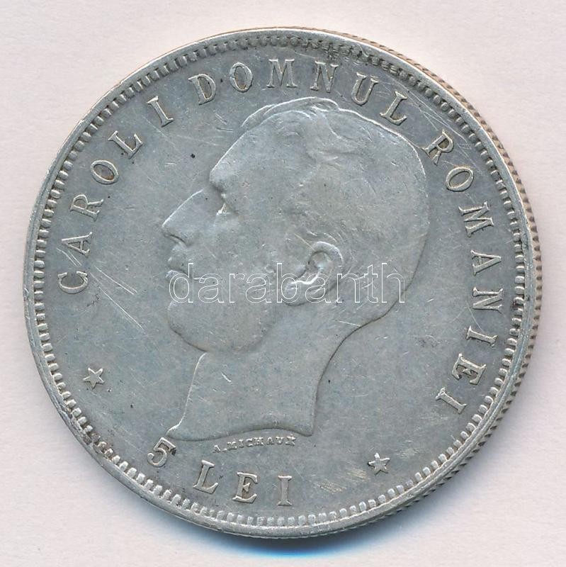 Romania 1906. 5 Lei Ag "Carol I" C:XF,VF edge error