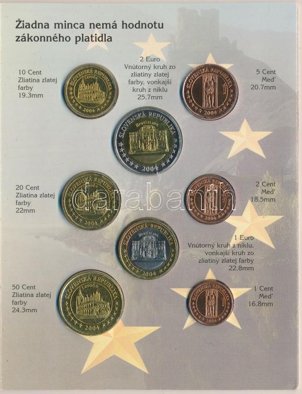 Slovakia 2004. 1 Cent - 2 Euro (8xdiff) "Euro trial set" C:BU