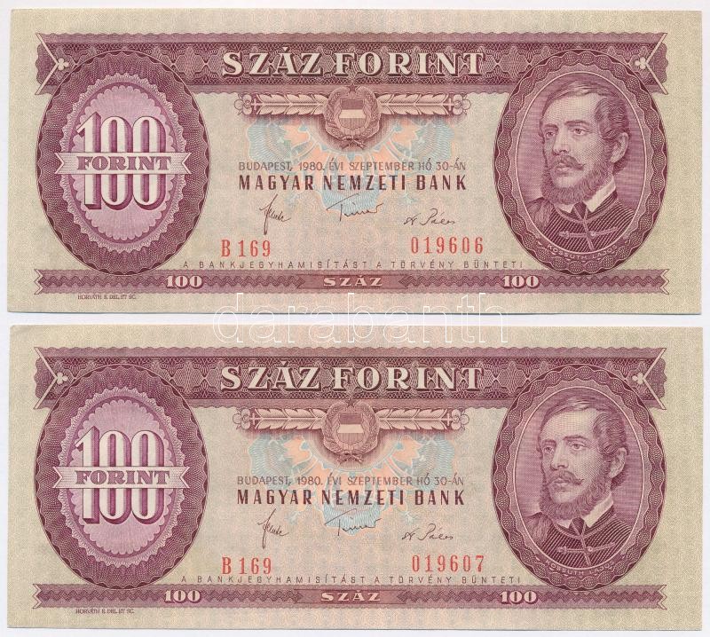 1980. 100Ft (2x) sorszámkövetők T:III szép papír