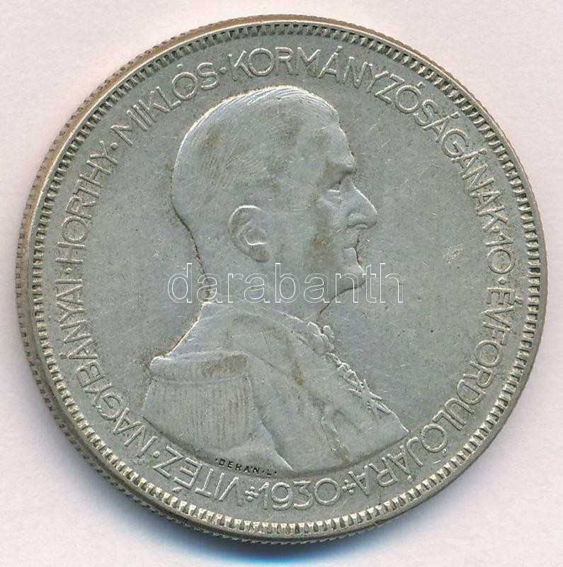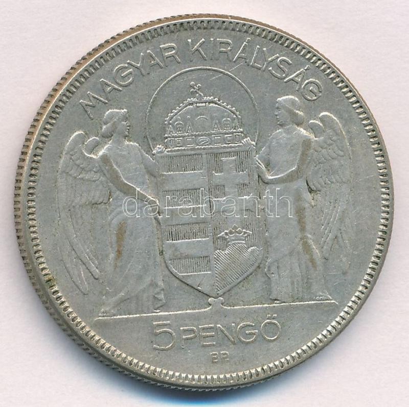 Leírás: 1930. 5P Ag "Horthy jobbra" T2-