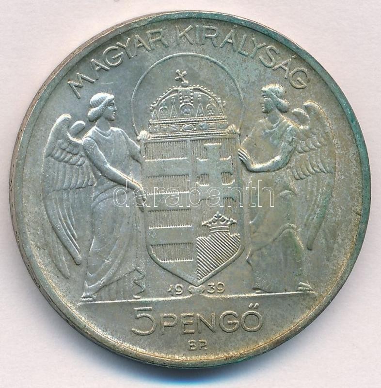 Leírás: 1939. 5P Ag "Horthy balra" T:1-,2 patina