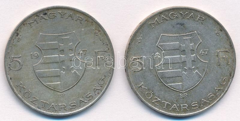 1947. 5Ft Ag "Kossuth" (2x) T:2-,3