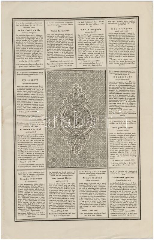 Leírás: Ausztria / Bécs 1868. Államadóssági kötvény 100G-ről, bélyegzésekkel, bélyeggel T:II