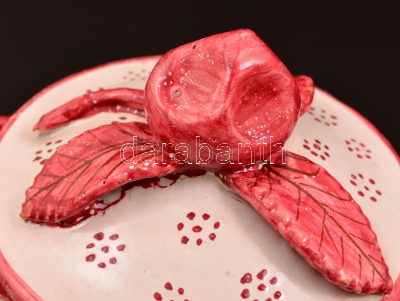 Leírás: Gosztonyi Mária (1893-1989): négyszemélyes mokkás készlet: 4 db csésze+alj, tejkiöntő, kiöntő, tál, cukortartó; mázas kerámia, jelzett, kopásokkal,