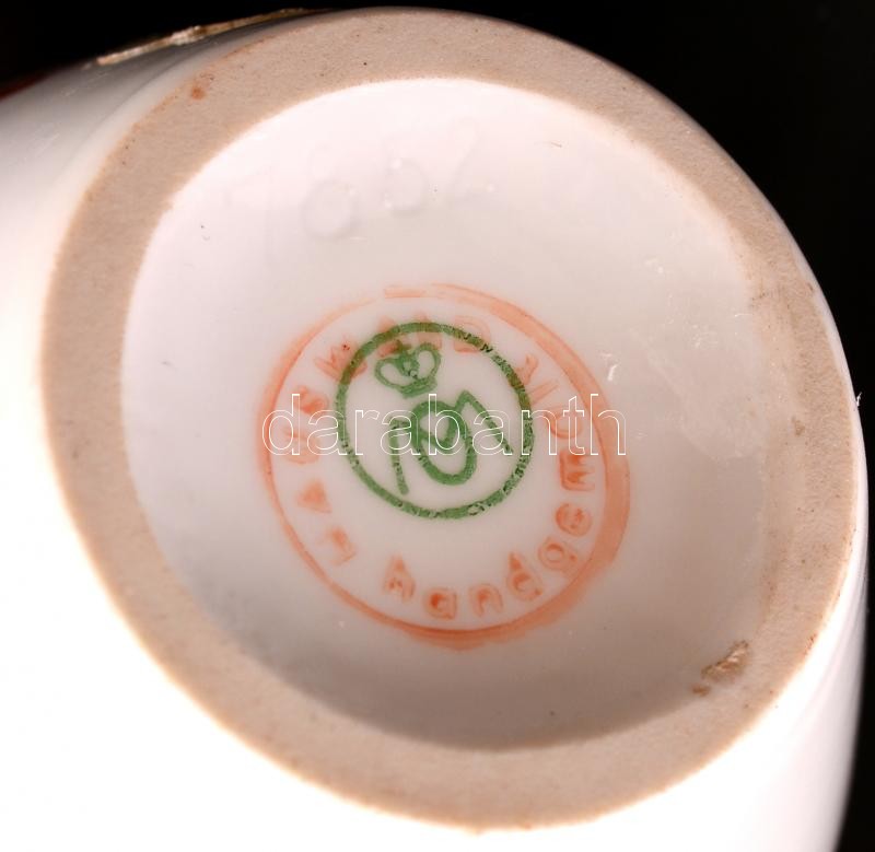 Leírás: Metzler Ortloff sárkányos váza, kézzel festett, jelzett, apró kopás nyomokkal, m: 18,5 cm