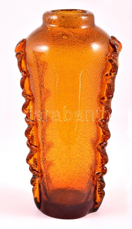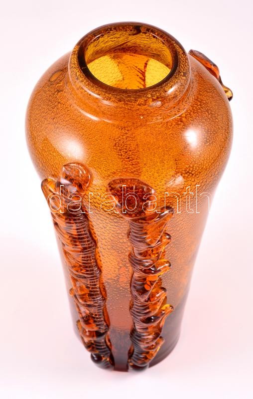 Leírás: Archimede Seguso: Fújt díszváza, plasztikus rátétekkel, több rétegű, hibátlan, m:26,5 cm