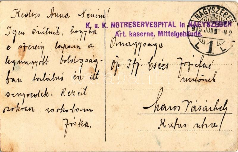 Leírás: Nagyszeben, Hermannstadt, Sibiu; Várlépcső, gyógyszertár / Burgstiege, Apotheke / street view with staircase, pharmacy + "K.u.K. Notreservespital in Nagyszeben Art. kaserne Mittelgebäude" (EK)