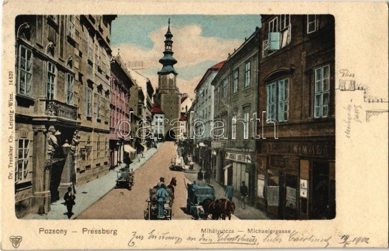 Pozsony, Pressburg, Bratislava; Mihály utca, Wimmer és Ignatz Lunzen ü... https://www.darabanth.com/hu/345-Gyorsarveres/345.0/Kepeslapok/Felvidek~2000008/Pozsony-Pressburg-Bratislava-Mihaly-utca-Wimmer-es-Ignatz-Lunzen-uzlete-street-view-with-sh~II1959501