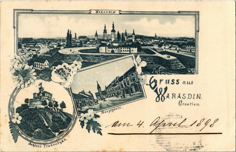 Leírás: 1898 Varasd, Warasdin, Varazdin; Hauptplatz, Schloss Trakostyán / Dvor Tracoscan / látkép, Fő tér, Trakostyán vára / general view, main square, castle. Art Nouveau, floral (EK)
