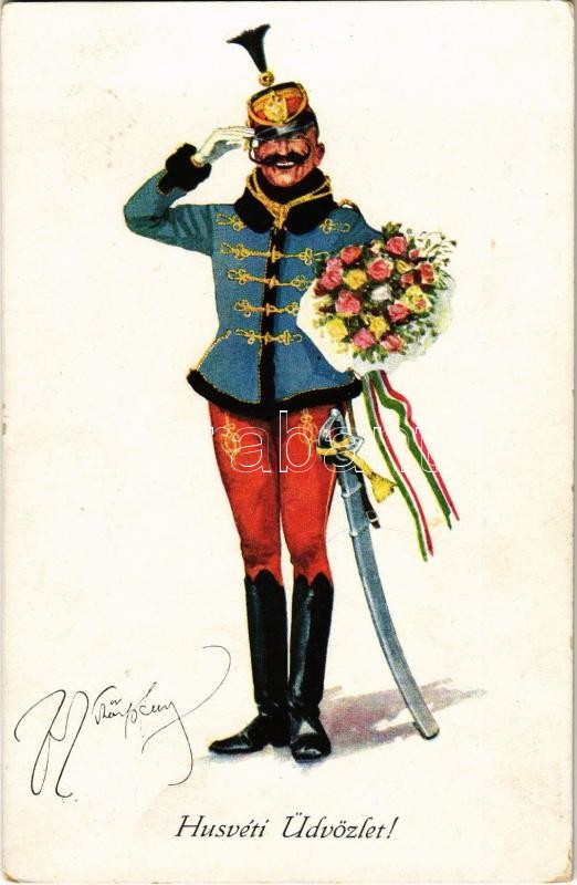 Leírás: Húsvéti üdvözlet! / Hungarian hussar, Easter greeting. M. Munk Wien Nr. 1064. s: Fritz Schönpflug