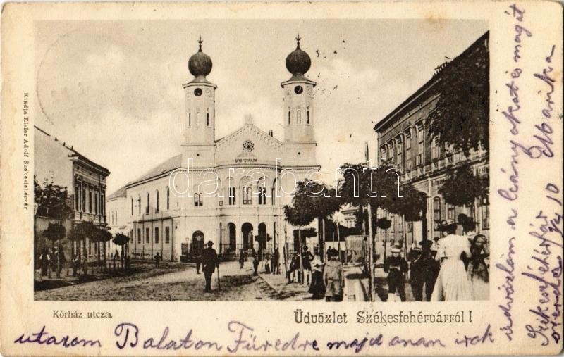 1903 Székesfehérvár, Kórház utca, neológ izraelita templom, zsinagóga.... https://www.darabanth.com/hu/345-Gyorsarveres/345.0/Kepeslapok/Magyarorszag~2000004/1903-Szekesfehervar-Korhaz-utca-neolog-izraelita-templom-zsinagoga-Eisler-Adolf-kiadasa~II1959193