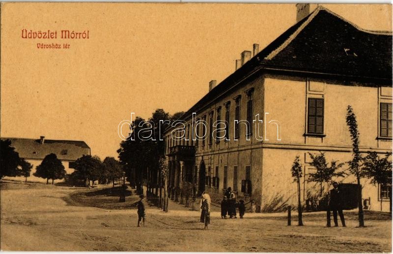 Leírás: 1908 Mór, Városház tér. W. L. (?) 2028. Kiadja Ebisch Antal