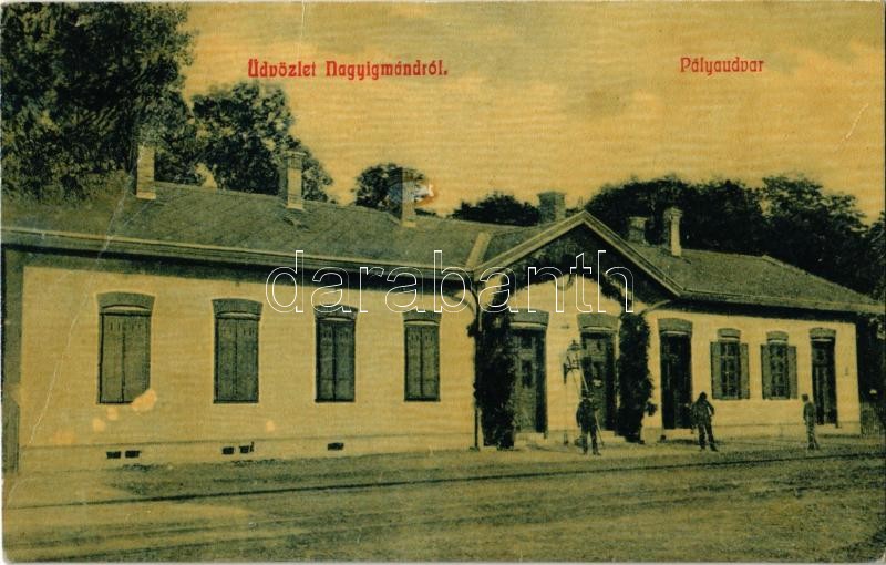 1908 Nagyigmánd, Pályaudvar, vasútállomás, létra, vasutasok. W. L. 205... https://www.darabanth.com/hu/345-Gyorsarveres/345.0/Kepeslapok/Magyarorszag~2000004/1908-Nagyigmand-Palyaudvar-vasutallomas-letra-vasutasok-W-L-2058-gyurodes-crease~II1950905