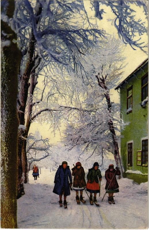 Wintersport / Winter Sport, skiing people on the streets https://www.darabanth.com/hu/345-Gyorsarveres/345.0/Kepeslapok/Sport~2000073/Wintersport-Winter-Sport-skiing-people-on-the-streets~II1954381