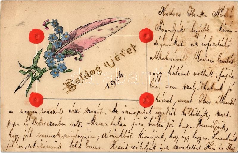 Leírás: 1904 Boldog Újévet! / New Year greeting floral Emb. litho