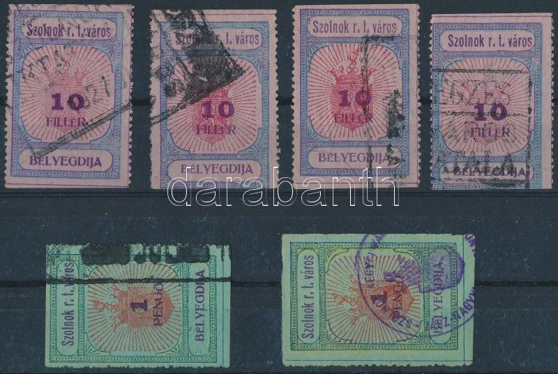 Leírás: 6 db Szolnok városi illetékbélyeg