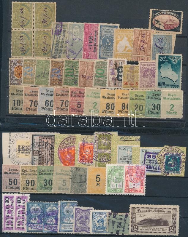 Leírás: 60 db német és svájci illetékbélyeg berakólapon