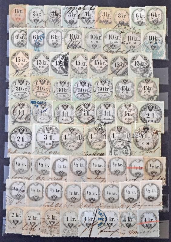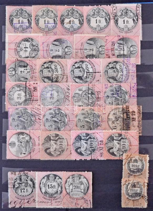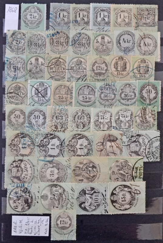 Leírás: Illetékbélyeg gyűjtemény 1854-1898 818 db bélyeg, benne hártyapapíros 15Ft