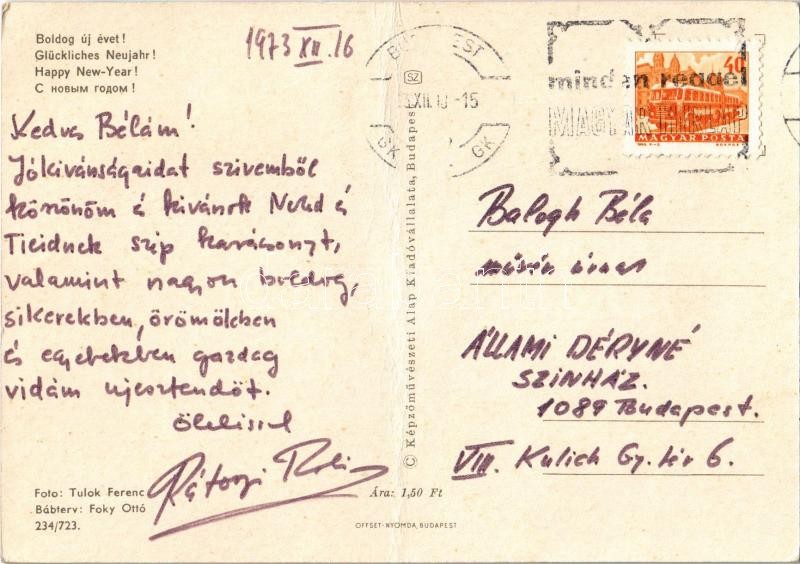 Leírás: 1973 Rátonyi Róbert (1923-1992) kézzel írt, aláírt képeslapja