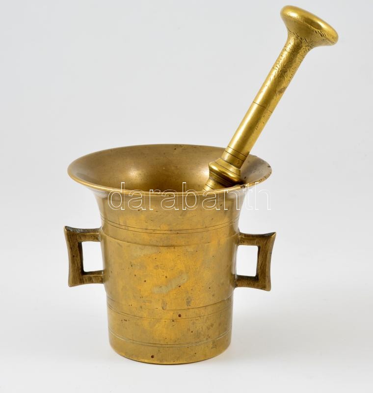Bronz füles mozsár törővel, m: 14 cm törő: 25,5 cm https://www.darabanth.com/hu/345-Gyorsarveres/345.0/Mutargy-papirregiseg-egyeb/Bolhapiac~500011/Bronz-fules-mozsar-torovel-m-14-cm-toro-25-5-cm~II1954468