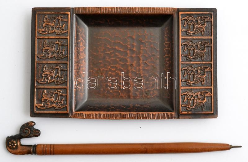Leírás: Iparművészeti Vállalatos dekoratív fém tálka + emléktoll