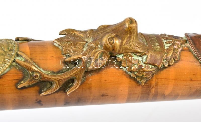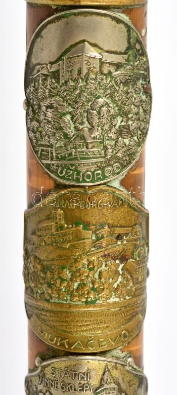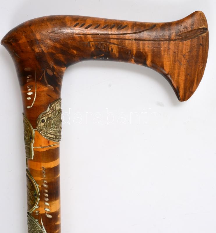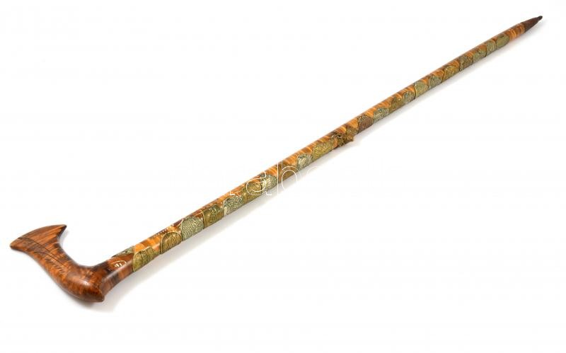 Leírás: XX. sz. eleje: Felvidéki, kárpátaljai városok turistajelvényeivel és szarvasfejes domborművel díszített turistabot. 90 cm