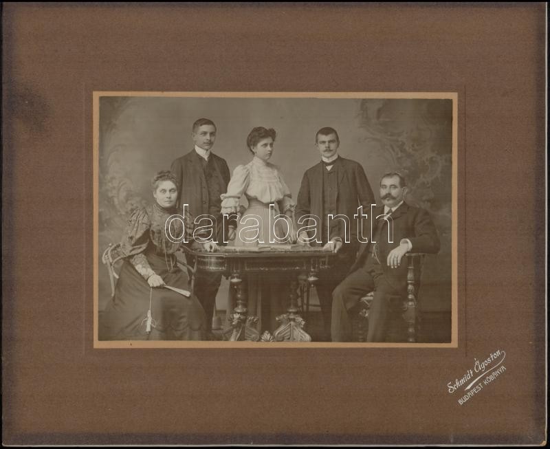 Leírás: cca 1910 Budapest - Kőbánya feliratú családi fotó Schmidt Ágoston műterméből, 16x23 cm, karton 29,5x35,5 cm