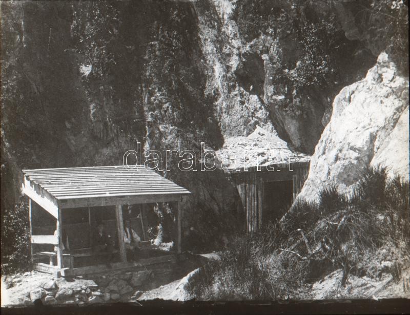 Leírás: cca 1910 Torja büdösbarlang. Üveg dia kép. 8x8 cm