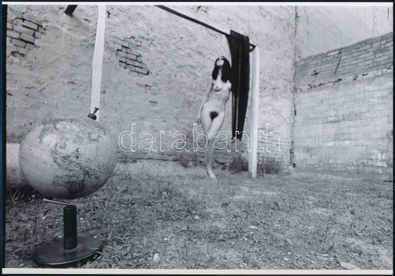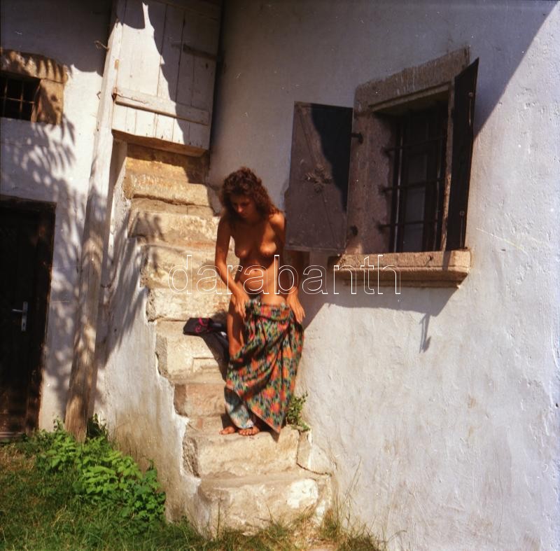 cca 1985 Fiatalkori emlékezetes kalandok, szolidan erotikus felvételek, 8 db vintage negatív + 1 db mai nagyítás, amely nem a tételben szereplő negatívok valamelyikéről készült, 6x6 cm és 25x18 cm