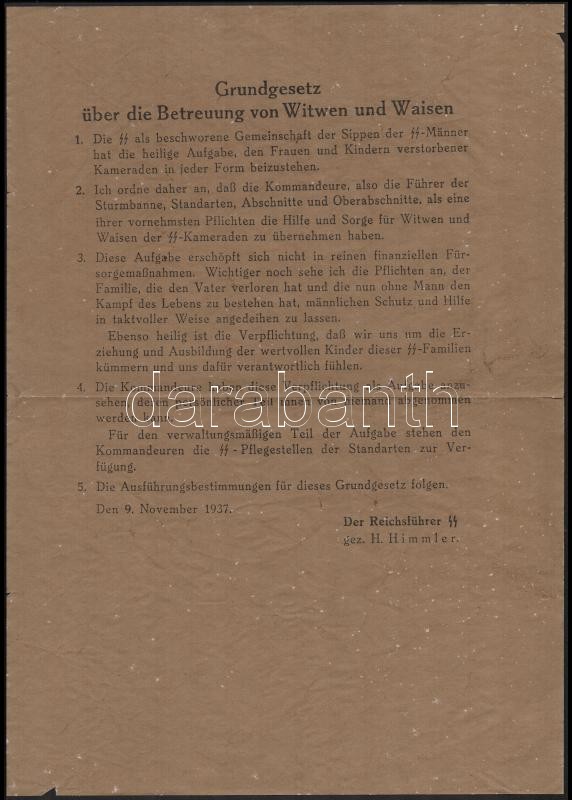 1937 Grundgesetz über die Betreuung von Witwen und Waisen, rendelet az... https://www.darabanth.com/hu/345-Gyorsarveres/345.0/Mutargy-papirregiseg-egyeb/Militaria~500028/1937-Grundgesetz-uber-die-Betreuung-von-Witwen-und-Waisen-rendelet-az-SS-tagok-ozvegyeinek-es-a~II1958058