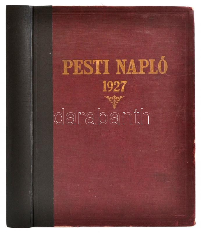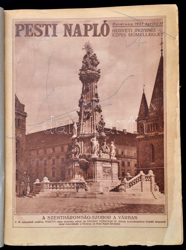 1927 Pesti Napló 1927. április 17-december 25. Számos fekete-fehér fotóval. Javított gerincű egészvászon-kötésben, javított kötéssel, egy lapon kivágás, egy lapon szakadás, az utolsó lapon firka.