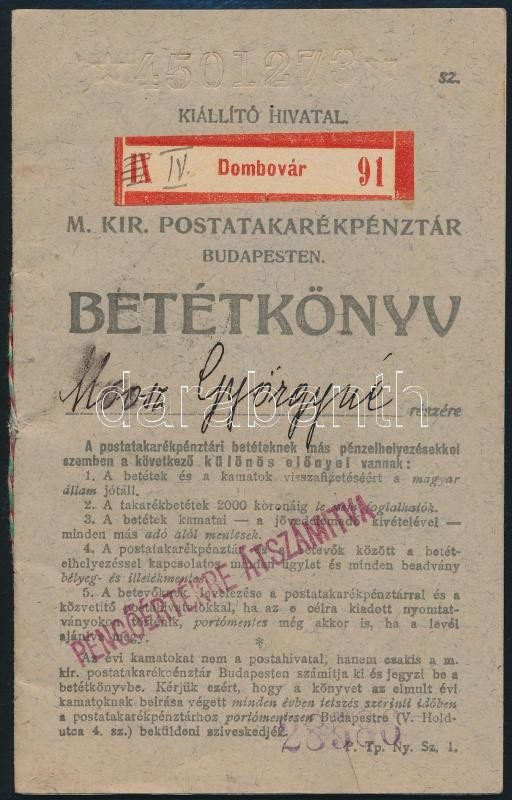 cca 1919 Postatakarékpénztári betétkönyv, későbbi bejegyzésekkel, "pen... https://www.darabanth.com/hu/345-Gyorsarveres/345.0/Mutargy-papirregiseg-egyeb/Okmanyok~500018/cca-1919-Postatakarekpenztari-betetkonyv-kesobbi-bejegyzesekkel-pengoertekre-atszamC3~II1958482