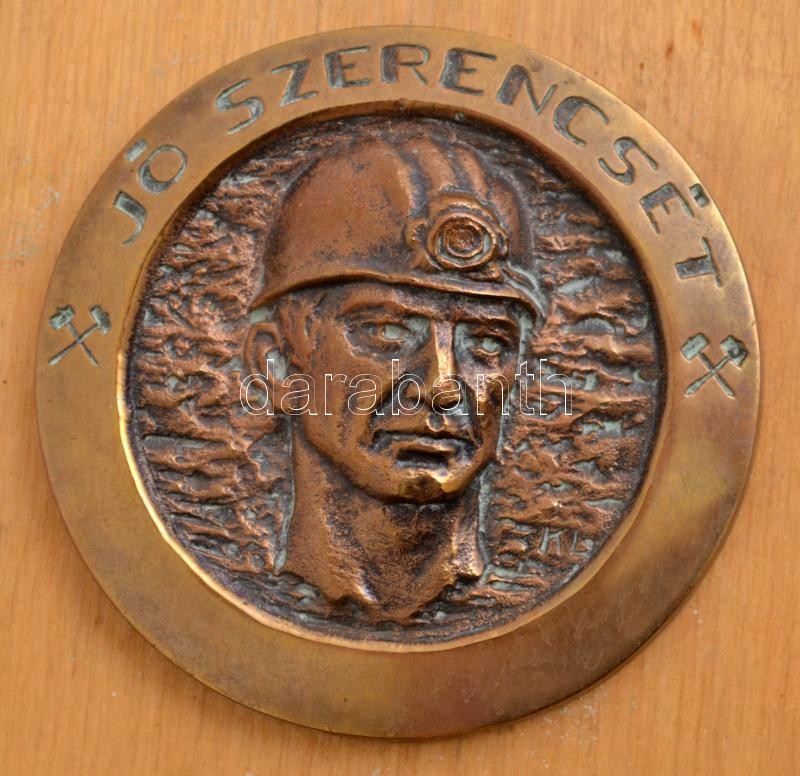 "Jó szerencsét!" bányászplakett, jelzett, fa alapon, d: 9,5 cm https://www.darabanth.com/hu/345-Gyorsarveres/345.0/Mutargy-papirregiseg-egyeb/Szobrok-kisplasztikak-plakettek~500005/Jo-szerencset-banyaszplakett-jelzett-fa-alapon-d-9-5-cm~II1960490