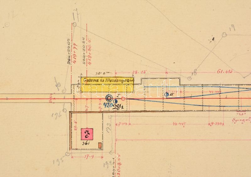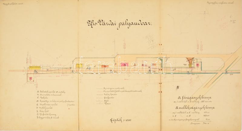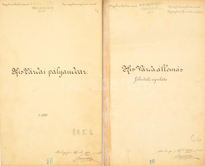 cca 1890 A Kis-Várdai vasútállomás tervrajza, valamint az állomás felvételi épületének tervrajza. Kézzel rajzolt. Magyar Északkeleti Vasút. Nyíregyháza-Ungvári vonal. 64x34 cm, 42x34 cm
