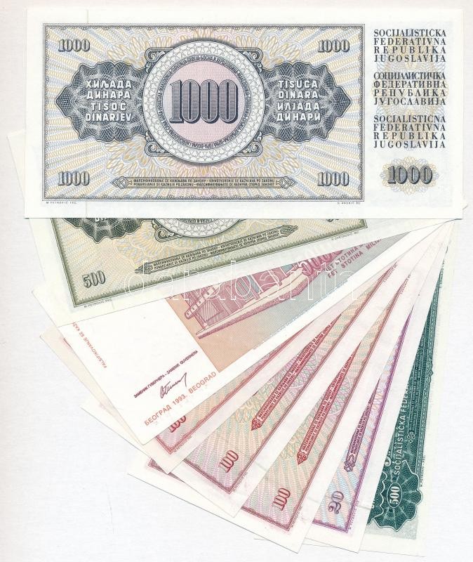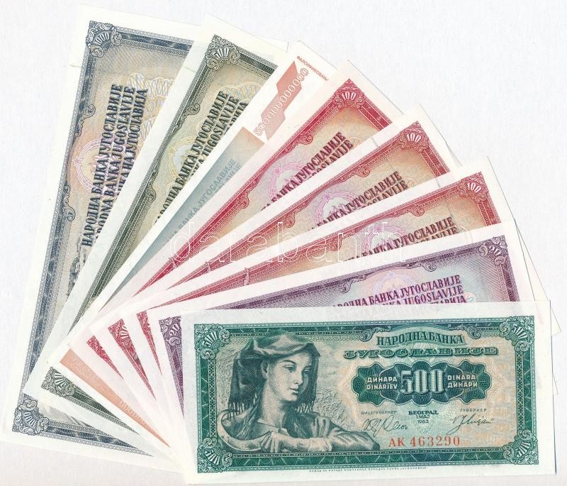 Leírás: Jugoszlávia 1963. 500D + 1965. 100D + 1974. 20D + 1978. 1000D + 1981. 500D + 1986. 100D (2x) sorszámkövetők + 1993. 500.000.000.000D T:I,I-,II