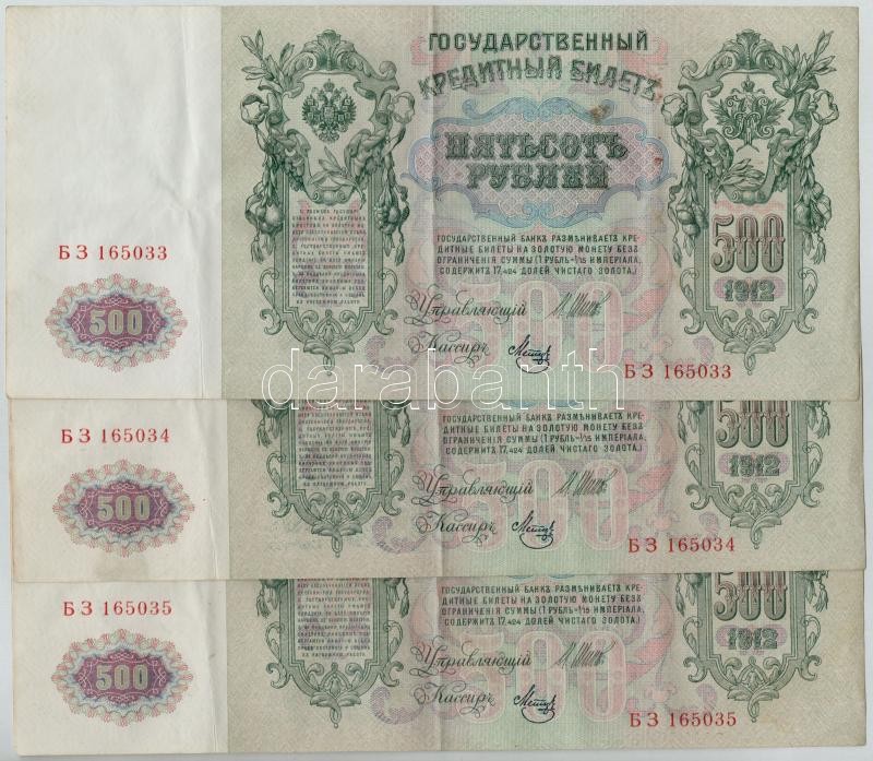 Russian Empire 1912-1917 (1912). 500 Rubles Sign.:Shipov (3x) sequential serials C:F