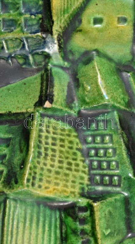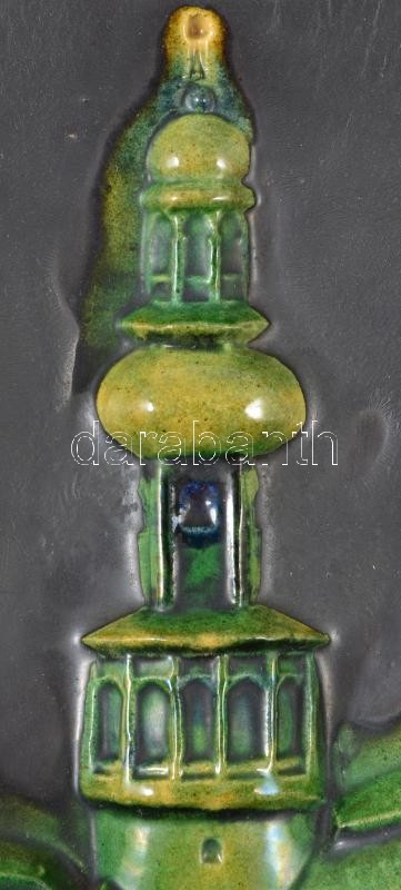 Leírás: Jelzés nélkül: Sopron. Fali dombormű, festett mázas kerámia, apró lepattanással, 36×28 cm