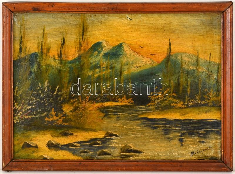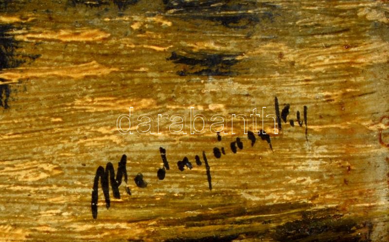 Leírás: Mednyánszky jelzéssel: Hegycsúcsok. Olaj, karton, keretben, foltos, festék hibákkal, 24×33 cm