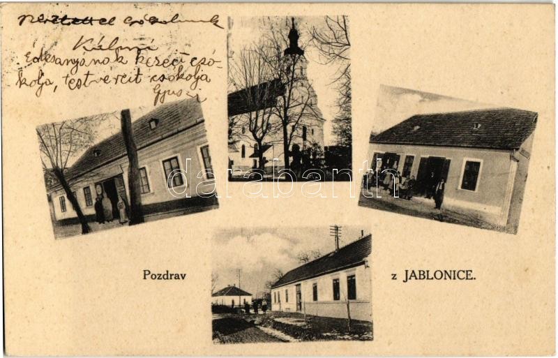 Leírás: Jablánc, Nyitra-Jablonic, Jablonica; Római katolikus templom, üzlet, utcakép / Catholic church, shop, street views