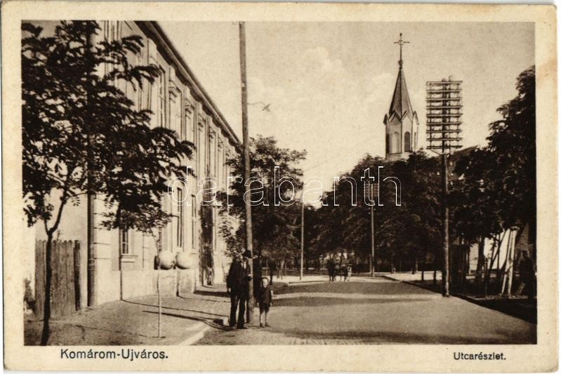 Leírás: Komárom, Komárnó; Újváros, utca, templom / street, church