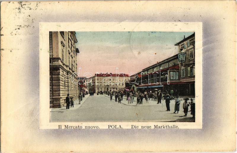 Pola, Pula; Il Mercato nuovo / Die nueu Markthalle / new market hall (... https://www.darabanth.com/hu/346-Gyorsarveres/346.0/Kepeslapok/Horvatorszag~2000009/Pola-Pula-Il-Mercato-nuovo-Die-nueu-Markthalle-new-market-hall-EK~II1966316