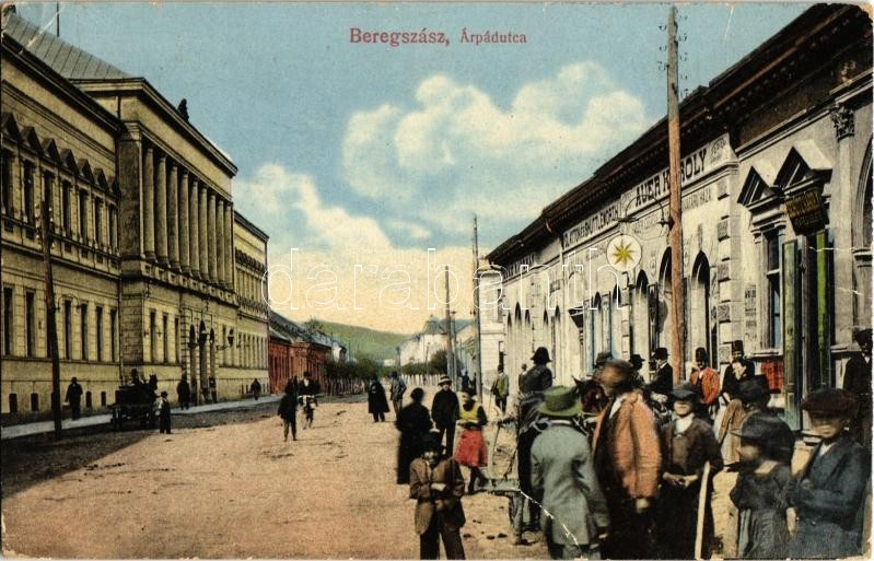 1915 Beregszász, Berehove; Árpád utca, Auer Károly, Schutz Károly üzle... https://www.darabanth.com/hu/346-Gyorsarveres/346.0/Kepeslapok/Karpatalja~2000008/1915-Beregszasz-Berehove-Arpad-utca-Auer-Karoly-Schutz-Karoly-uzlete-kavehaz-Kiadja-F~II1964422