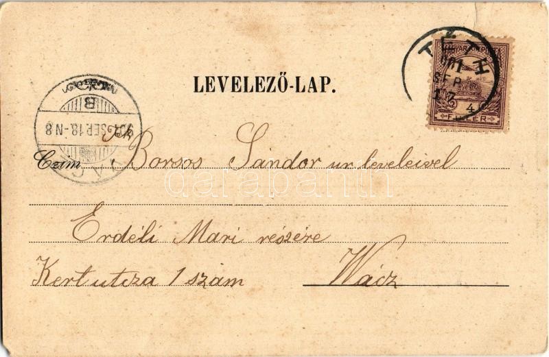 Leírás: 1901 Tét, Első téthi gőzmalom, Szolgabírói hivatal, Kisfaludy Károly szülőháza. Art Nouveau, floral (EM)