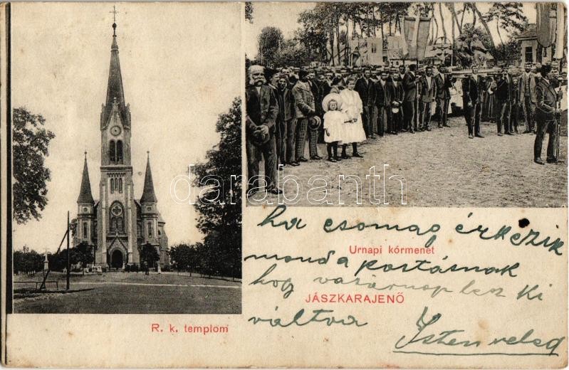 Jászkarajenő, Úrnapi körmenet, Római katolikus templom (Rb) https://www.darabanth.com/hu/346-Gyorsarveres/346.0/Kepeslapok/Magyarorszag~2000005/Jaszkarajeno-Urnapi-kormenet-Romai-katolikus-templom-Rb~II1964110