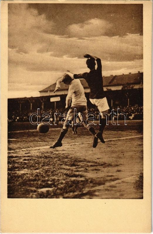 1913 Svéd-magyar válogatott labdarúgó mérkőzése, foci, Bodnár fautolja a svéd kapust. Kiadja a "Klasszikus pillanatok" vállalat, Révész és Biró / Swedish-Hungarian football match