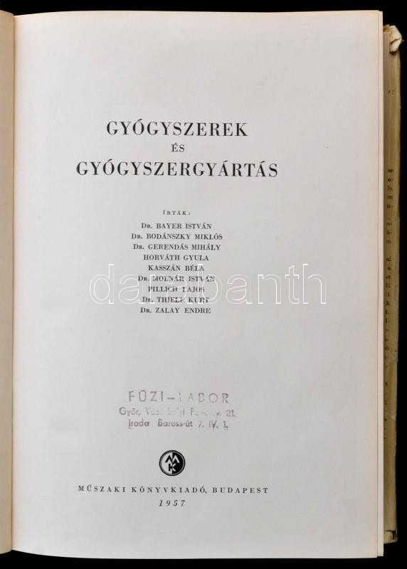Bayer István et al.: Gyógyszerek és gyógyszergyártás. Bp., 1957, Műsza... https://www.darabanth.com/hu/346-Gyorsarveres/346.0/Konyvek/Konyvek-Termeszettudomany-medicina~1500009/Bayer-Istvan-et-al-Gyogyszerek-es-gyogyszergyartas-Bp-1957-Muszaki-Vaszonkotesben-~II1956232